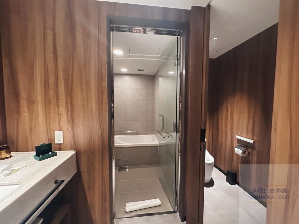 整間房間我覺得唯一可惜的應該是淋浴空間,雖然空間一樣很寬敞,但整體設計質感上感覺與房間其他空間有點落差,有種商務飯店的感覺。
