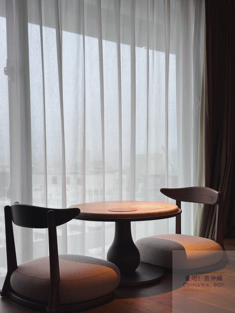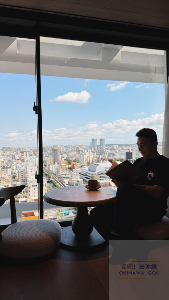 最喜歡窗邊這個小茶几的座位,坐著不管是看那霸市景發呆,或是喝杯咖啡看看書都很適合。