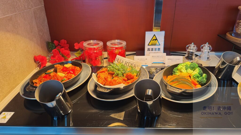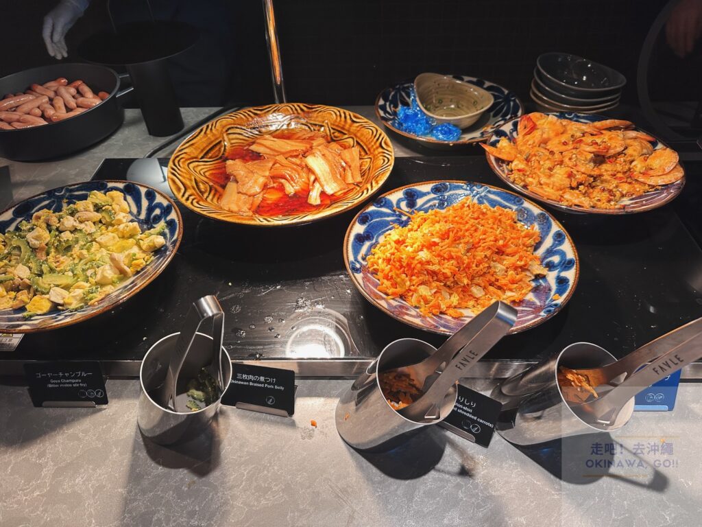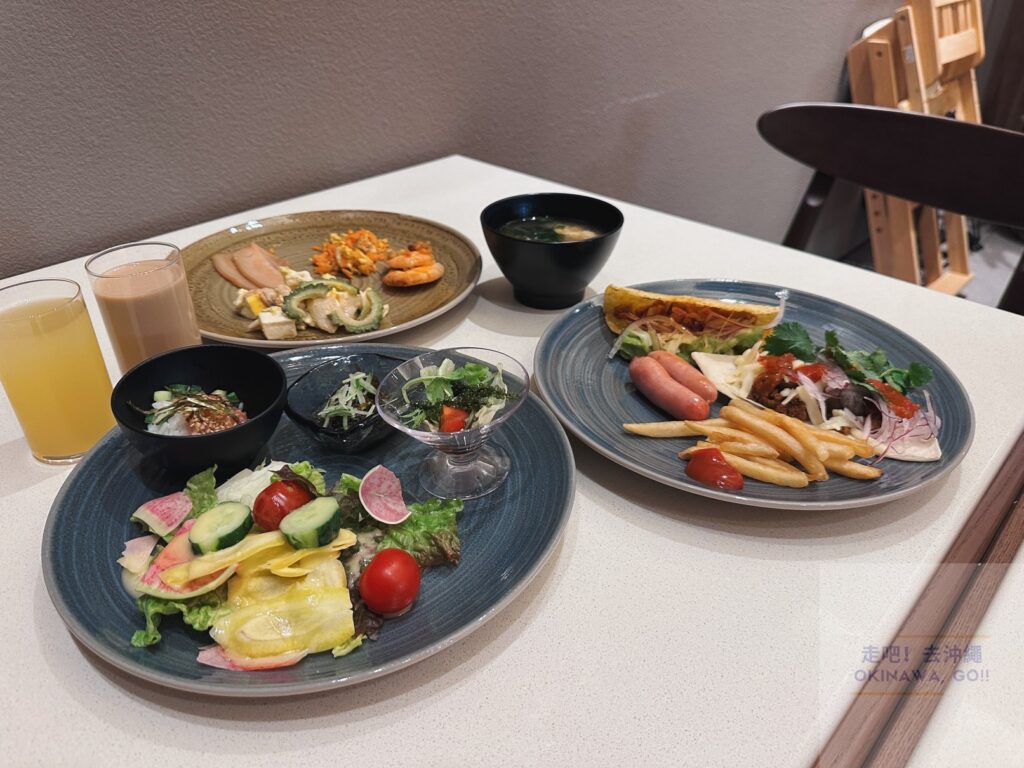 早餐和多數沖繩飯店一樣,提供多種沖繩元素餐點,例如豬肉蛋飯糰、炊飯、沖繩麵等,其中塔可餅也有多種配料,頗具特色。